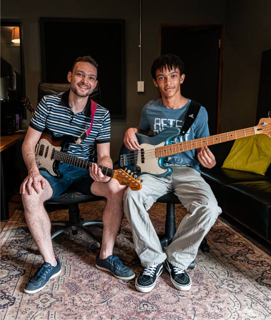 The school was founded by Richardt Mare in 2014, and together with JP Cordier, we compiled a syllabus, drawing on our combined teaching experience of 25 years. Music theory is seamlessly incorporated into the practical repertoire, keeping it fun. The course was designed to be fluid and to meet the needs of all students, young and old, beginner or advanced, including a variety of music genres. Regardless of whether you dream of becoming a professional musician or just want to impress your friends around a campfire, the student sets the pace.